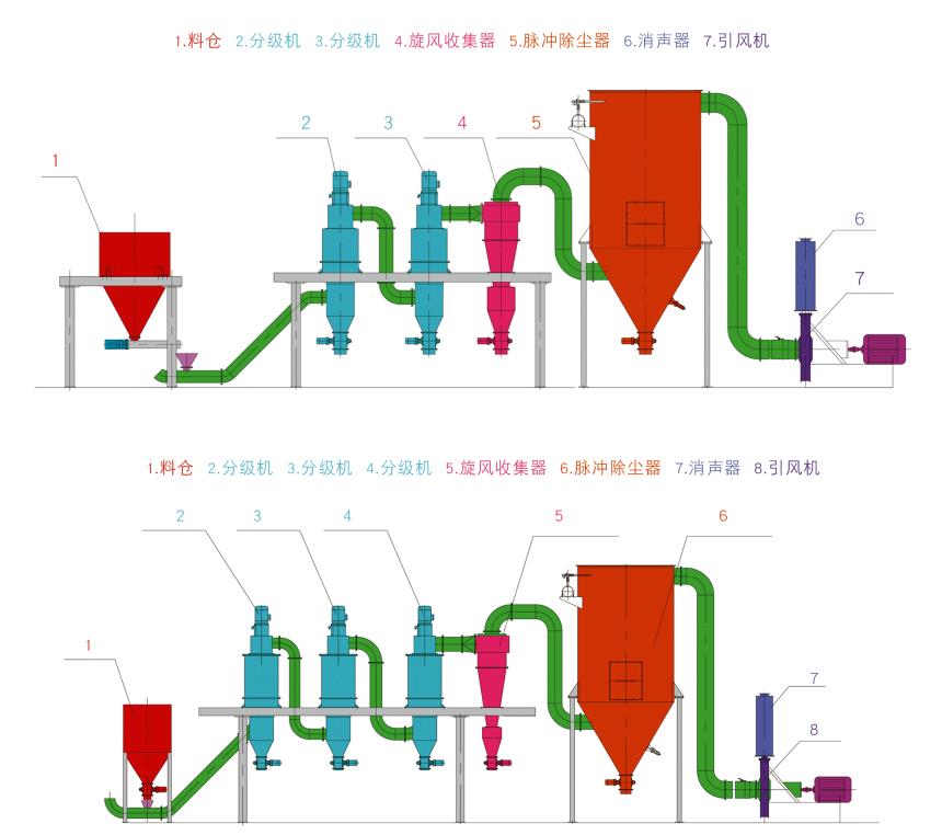 ● 可多級分級機串聯使用,同時生產多個粒度段的產品;